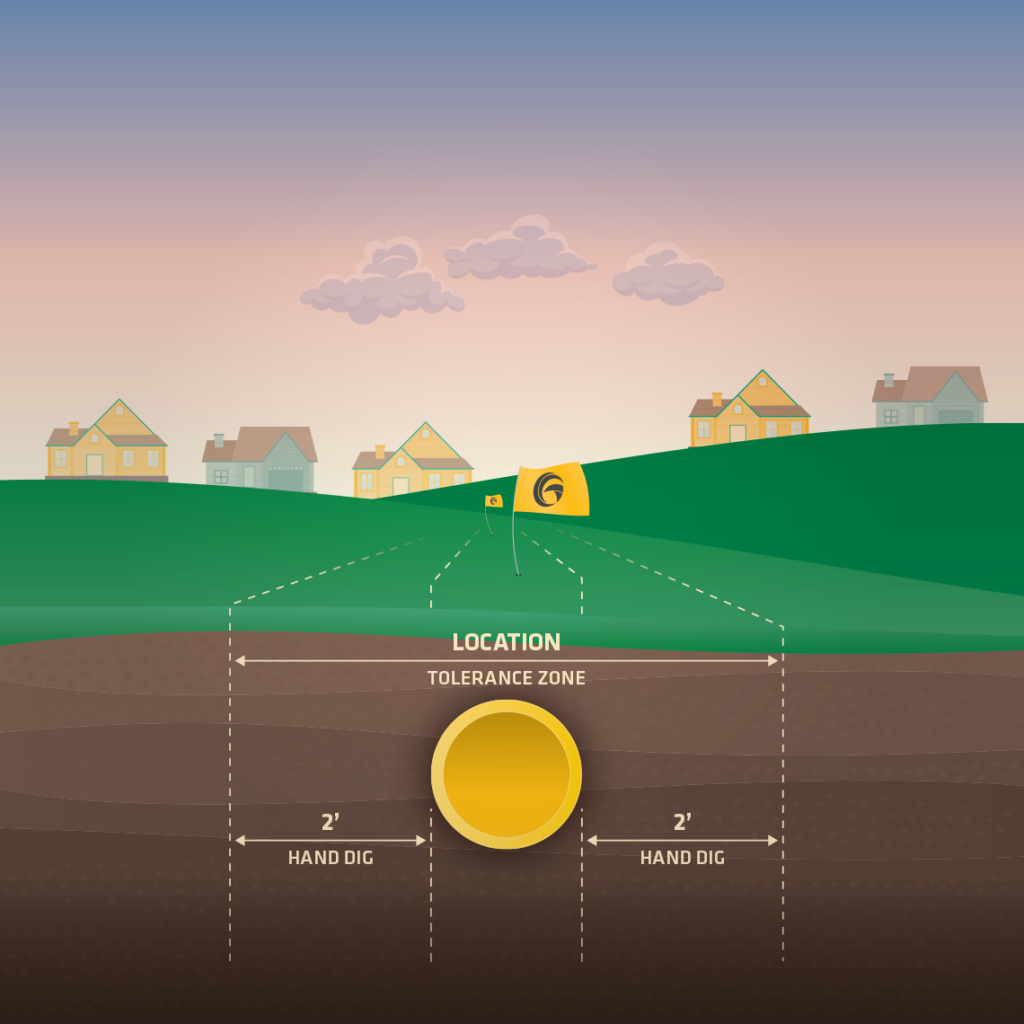 A major cause of pipeline damage is unsafe digging by third parties near pipelines. If you plan to do any excavation work, remember to always call 811 at least 48 hours, excluding weekends and holidays before the project begins. The 811 call center will notify Kansas Gas Service, and we will send a locator to the site to mark the location of our pipelines with yellow flags and/or yellow paint. In some instances, we will stand by on-site while digging occurs to protect the pipeline’s integrity. For more information or to submit a ticket, call 811 or go to kansas811.com.